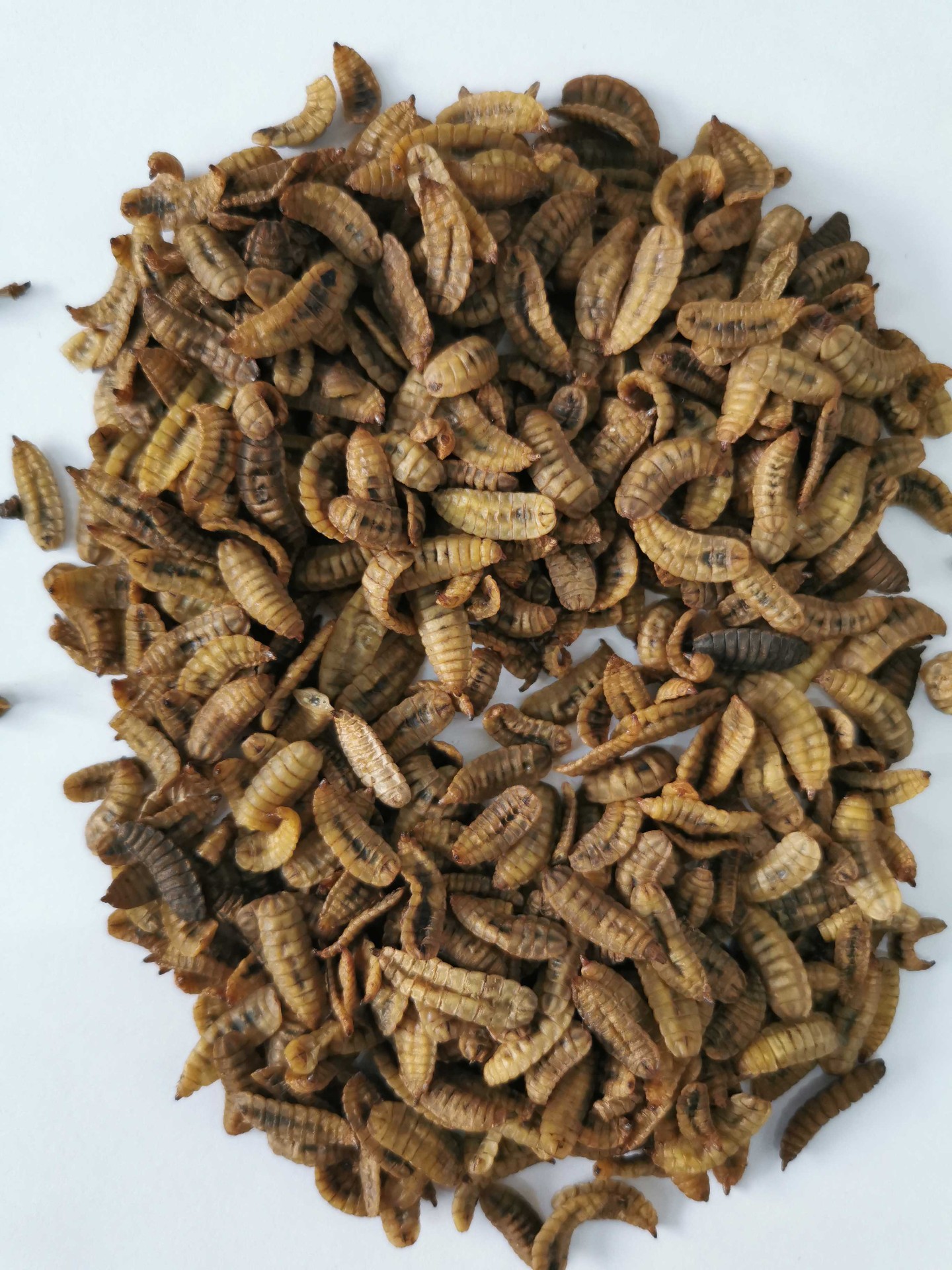 黑水虻幼虫用热风烘干得到黑水虻低温虫干。