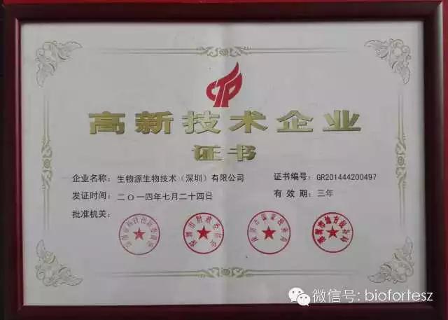 热烈祝贺生物源生物技术(深圳)有限公司获国家高新技术企业荣誉称号阅读次数 [5259] 发布时间 :2014-12-06